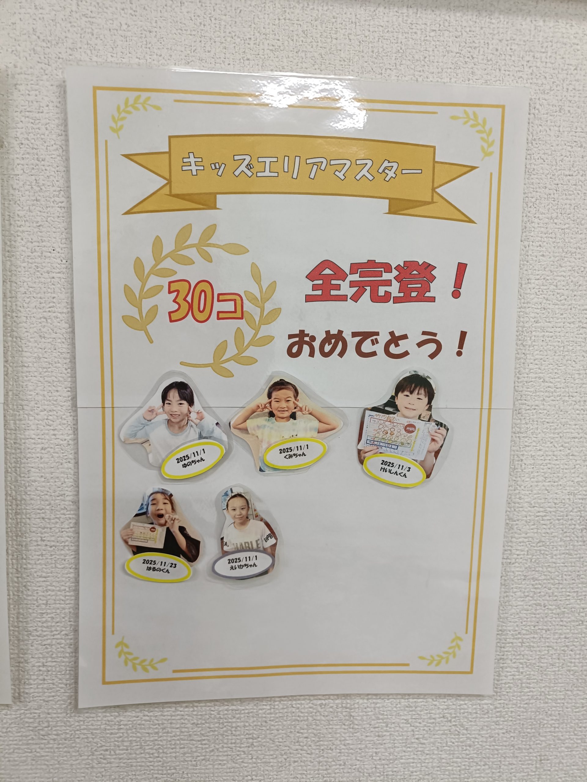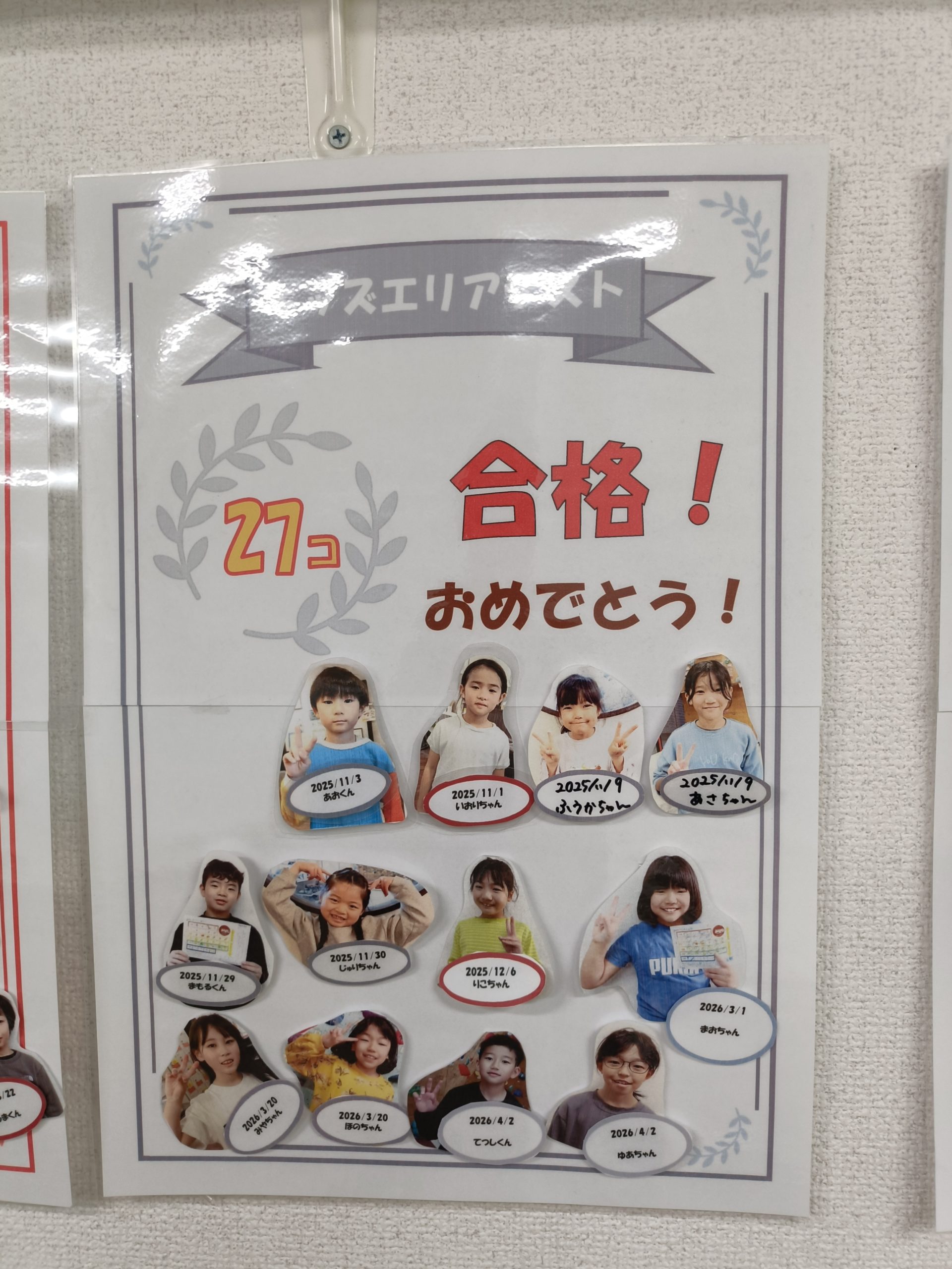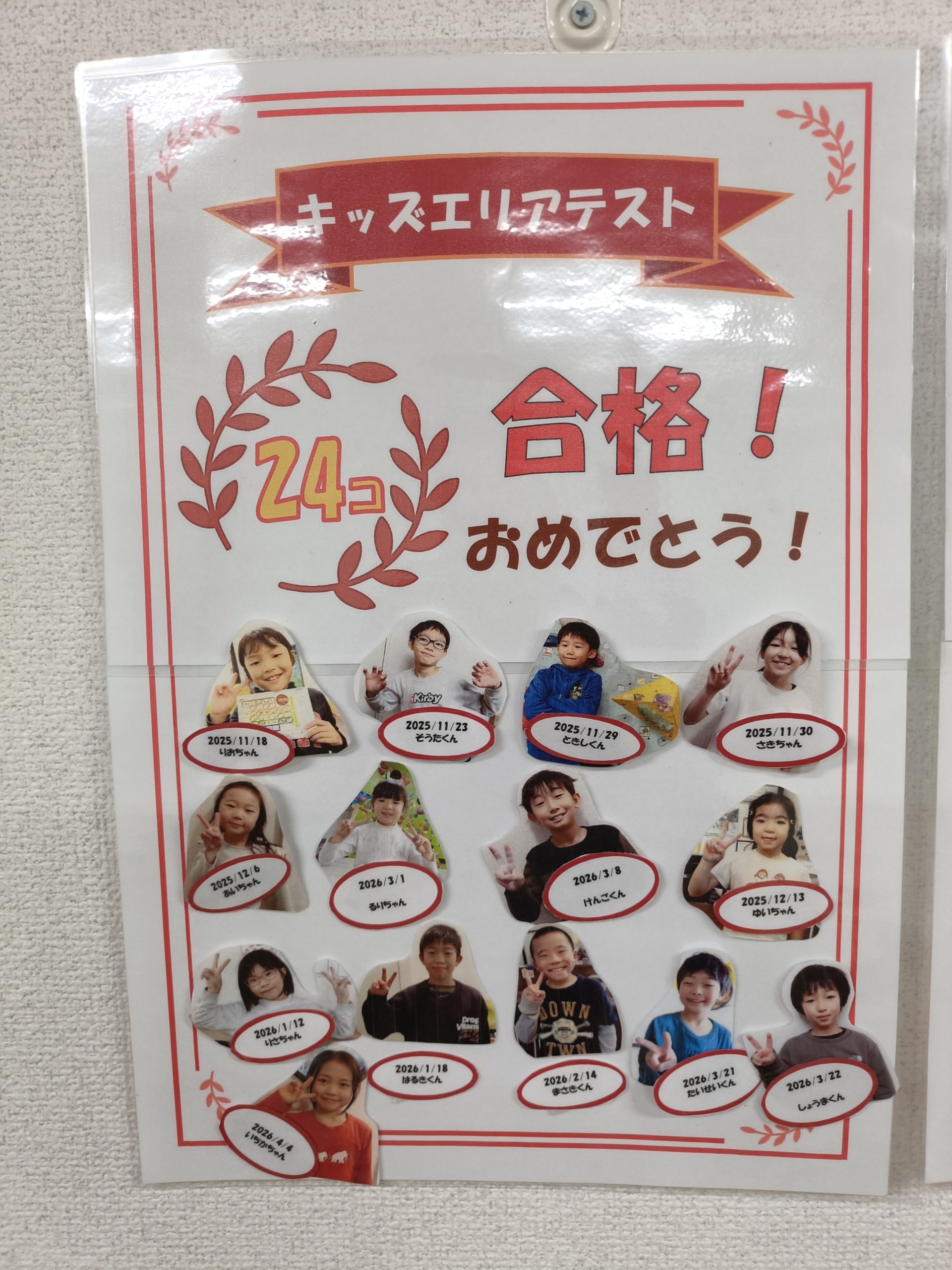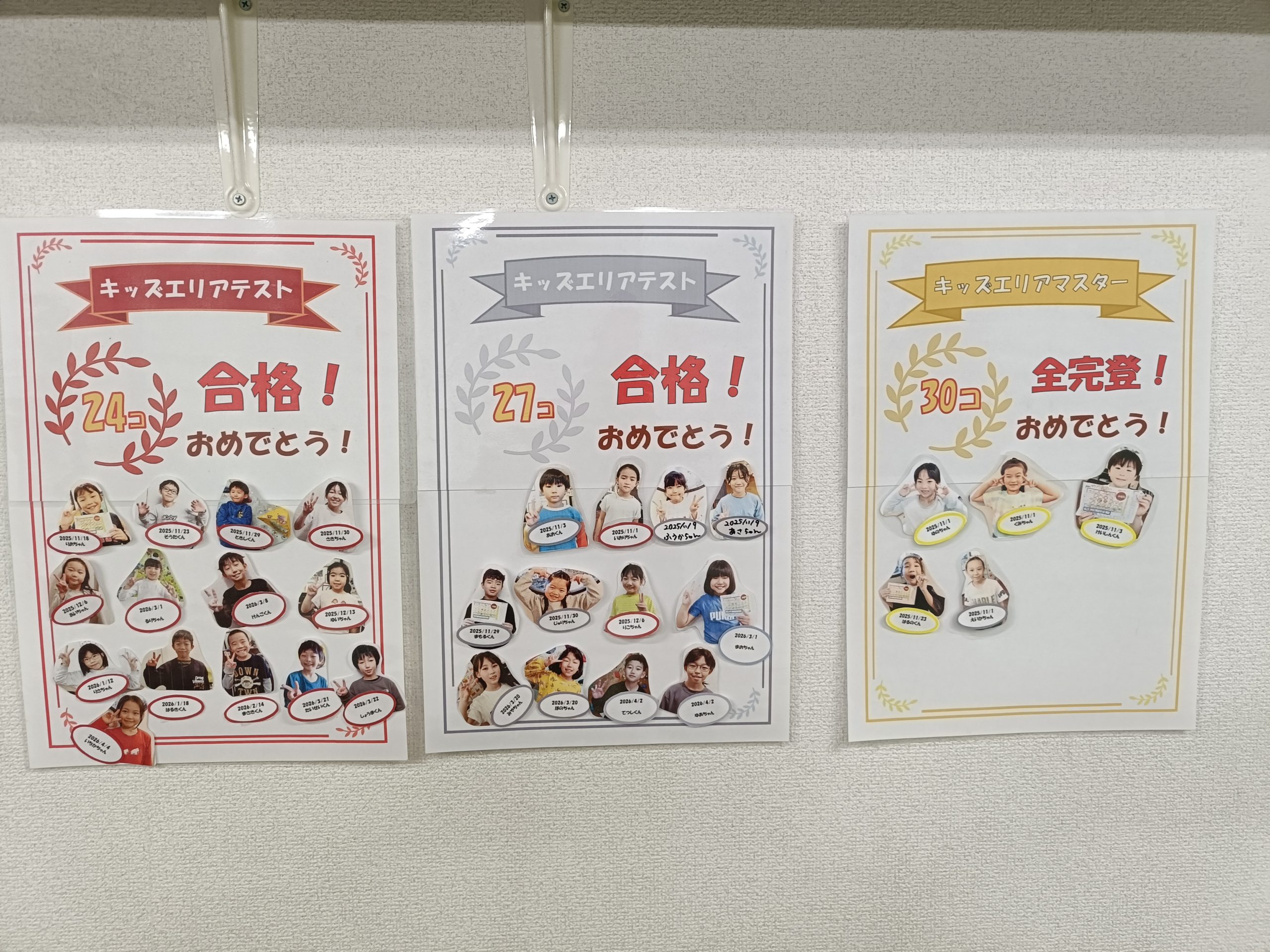 キッズエリアテスト表彰のシートも、最終日まで合格したキッズたちの名前で埋まりました👏