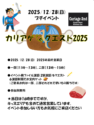 🎉年末ミニイベントのお知らせ🎉 年内最終営業日の 12/28(日) は16時までの短縮営業です🙇 そしてそしてミニイベントを開催します! 題して… 『カリア... -