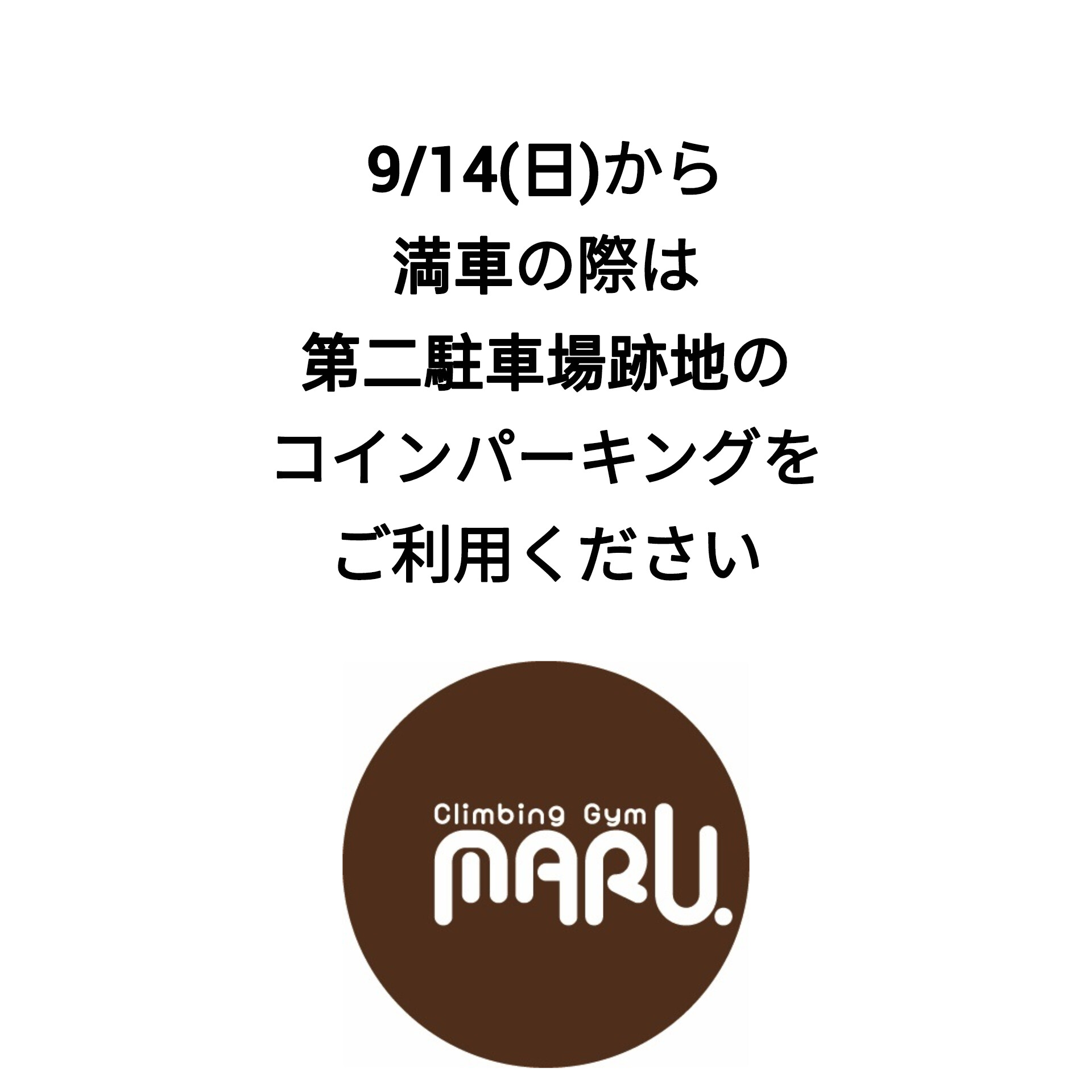 【重要】9/14(日)以降、満車の際は第二駐車場跡地コインパーキングご利用ください